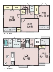 | 間取内容 | LDK・・・約16畳 洋室・・・約8畳・約6.12畳・約6帖・約4.5畳 |