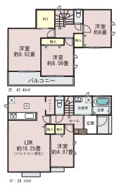| 間取内容 | LDK・・・約18.25畳 洋室・・・約8.62畳・約6.06畳・約6帖・約4.87畳 |
