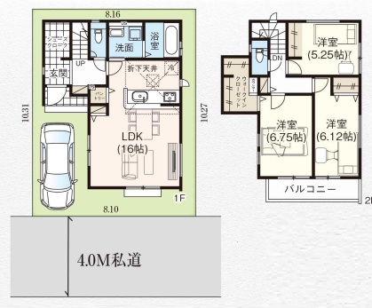 | 間取内容 | LDK・・・16帖 洋室・・・6.75帖・6.0帖・5.25帖 |