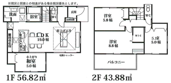 | 間取内容 | LDK・・・19.0帖 洋室・・・8.8帖・5.8帖・5.0帖 和室・・・5.0帖 |