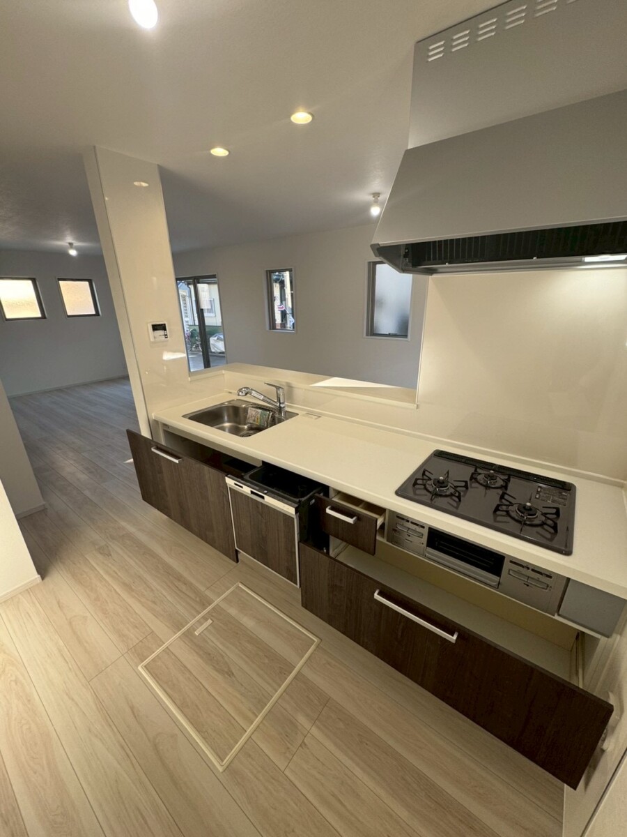 | 設備・条件 | 設備:公営管・本下水・都市ガス・宅内浸透 24時間換気・浴室乾燥機・一坪UB・全居室クローゼット・ウォシュレット・シャッター・浄水器・在来工法・ハンドシャワー付き洗面台・ビルトイン食器洗浄機・床下収納・TVモニター付インターフォン・手すり付階段 |