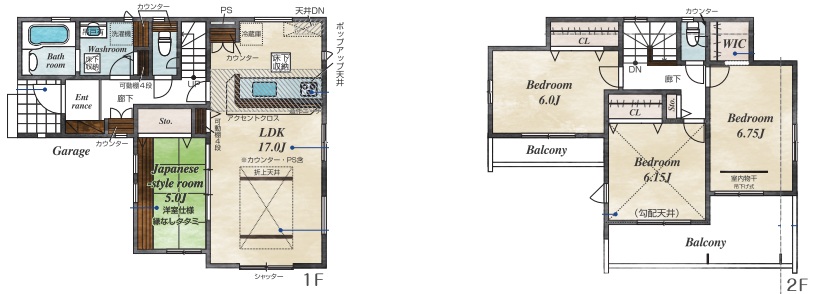 | 間取内容 | LDK・・・17.0帖 洋室・・・6.75帖・6.15帖・6.0帖 和室・・・5.0帖 |
