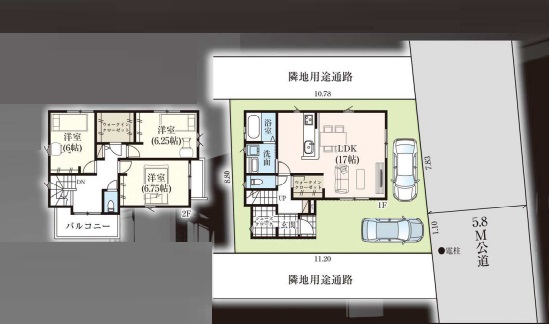 間取内容 | LDK・・・17帖 居室・・・6.75帖・6.25帖・6帖 |