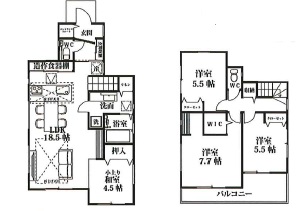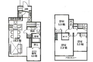| 間取内容 | LDK・・・18.5帖 居室・・・7.7帖・5.5帖・5.5帖・4.5帖 |