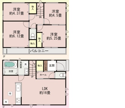 | 間取内容 | LDK・・・16帖 洋室・・・4.37帖、6.12帖、4.5帖、5.25帖 |