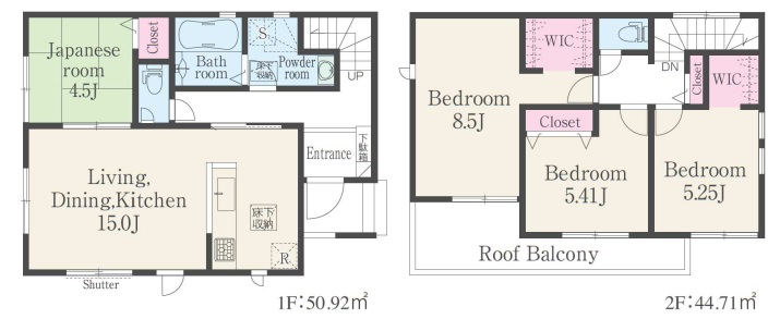 間取内容 | LDK・・・15帖 洋室・・・8.5帖、5.41帖、5.25帖 和室・・・4.5帖 |