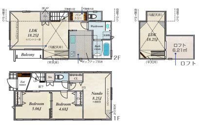 | 間取内容 | LDK・・・18.25帖 洋室・・・5.06帖・4.68帖 納戸・・・8.25帖 |