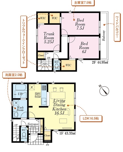 | 間取内容 | LDK・・・16.5帖 洋室・・・6帖、7.5帖、5.25帖 |