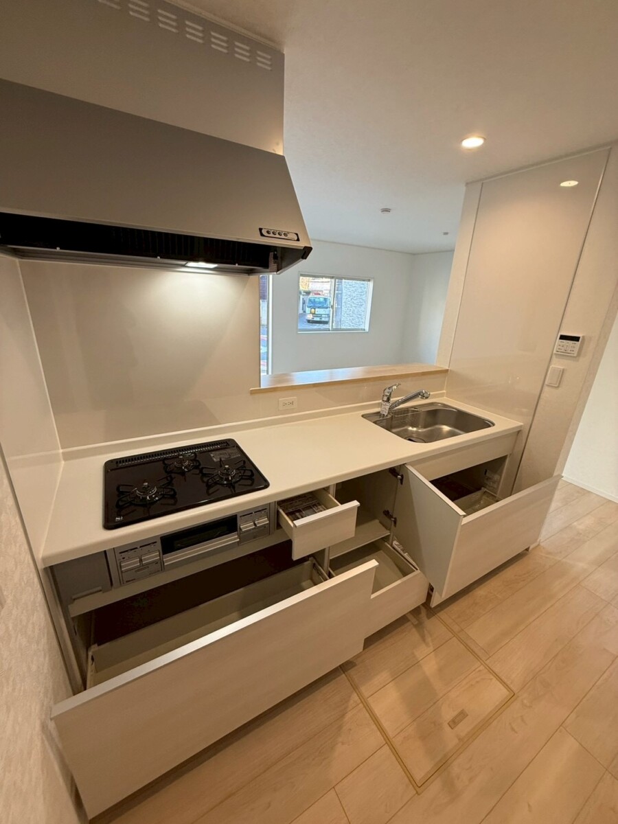 使用:TVモニター付きインターフォン、床下収納、システムキッチン、24時間換気システム、シャワートイレ、人感センサー付き玄関灯、防犯カメラ、ベタ基礎、玄関ドアICキー、3口ガスコンロ、浄水器一体型シャワー水栓 |