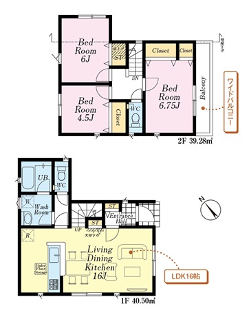 | 間取内容 | LDK・・・16帖 洋室・・・6.75帖、6帖、4.5帖 |