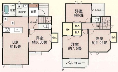 | 間取内容 | LDK・・・約15帖 洋室・・・約7.5帖・約6.06帖・約6.06帖・約6帖 |