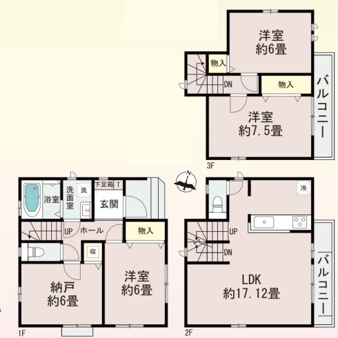 間取内容 | LDK・・・17.12帖 洋室・・・6帖、7.5帖、6帖 納戸・・・6帖 |