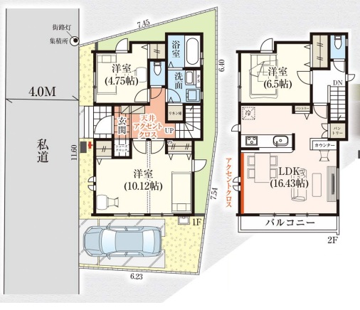 | 間取内容 | LDK・・・16.43帖 洋室・・・10.12帖・6.5帖・4.75帖 |