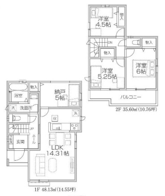| 間取内容 | LDK・・・14.31帖 洋室・・・6帖・5.25帖・4.5帖 納戸・・・5帖 |