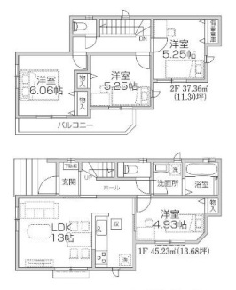 | 間取内容 | LDK・・・13帖 洋室・・・6.06帖・5.25帖・5.25帖・4.93帖 |