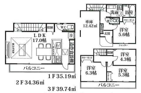 | 間取内容 | LDK・・・17.0帖 洋室・・・6.3帖・5.6帖・5.3帖・4.3帖 |