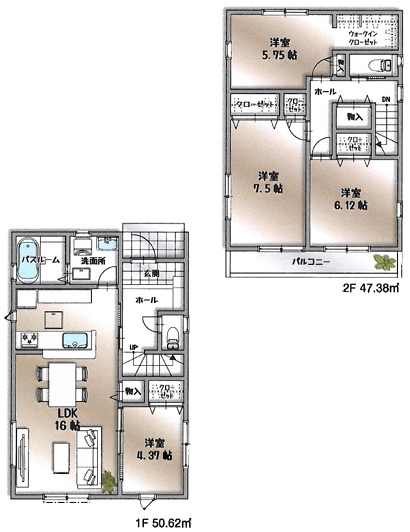 | 間取内容 | LDK・・・16帖 洋室・・・7.5帖・6.12帖・5.75帖・4.37帖 |