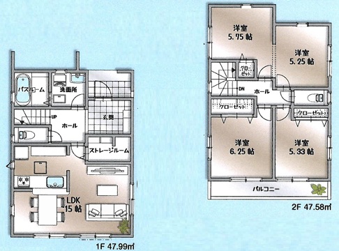 | 間取内容 | LDK・・・15帖 洋室・・・6.25帖・5.75帖・5.33帖・5.25帖 |