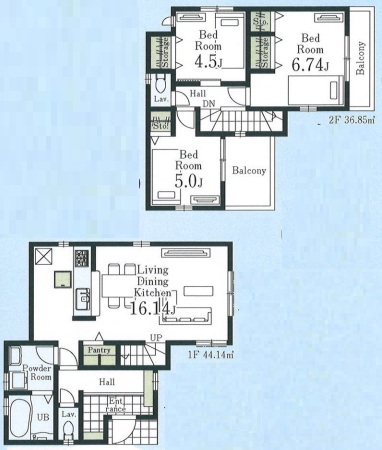 | 間取内容 | LDK・・・16.14帖 洋室・・・6.74帖・5.0帖・4.5帖 |