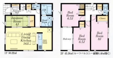 | 間取内容 | LDK・・・16帖 洋室・・・8帖・6.5帖・6.5帖 和室・・・4帖 |
