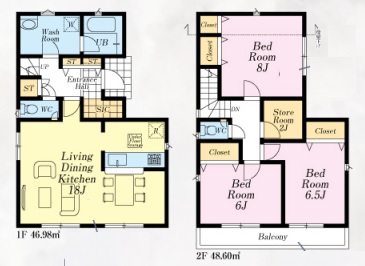 | 間取内容 | LDK・・・18帖 洋室・・・8帖・6.5帖・6帖 |