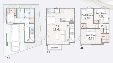 | 間取内容 | LDK・・・16.4帖 洋室・・・6.7帖・5.0帖・4.5帖 |