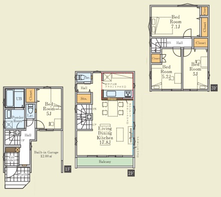 | 間取内容 | LDK・・・17.8帖 洋室・・・7.1帖・5.2帖・5帖・5帖 |