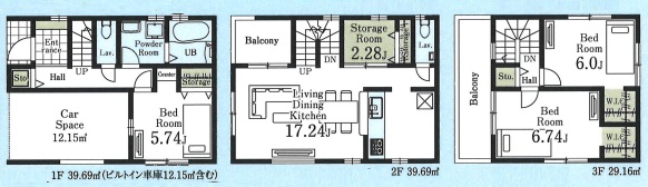 | 間取内容 | LDK・・・17.24帖 洋室・・・6.74帖・6.0帖・5.74帖 ストレージルーム・・・2.28帖 |