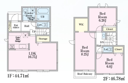 | 間取内容 | LDK・・・16.75帖 洋室・・・8.25帖・6.28帖・6.0帖 | ||