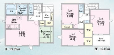 間取内容 | LDK・・・15.5帖 洋室・・・7.37帖・6.03帖・6.0帖 和室・・・3.75帖 |