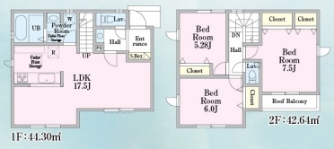 | 間取内容 | LDK・・・17.5帖 洋室・・・7.5帖・6.0帖・5.28帖 | ||