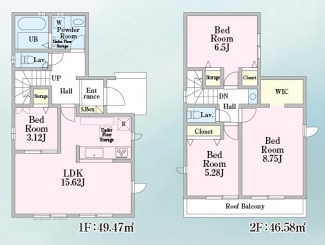 | 間取内容 | LDK・・・15.62帖 洋室・・・8.75帖・6.5帖・5.28帖・3.12帖 |