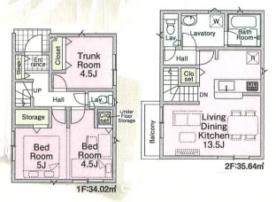 | 間取内容 | LDK・・・13.5帖 洋室・・・5帖・4.5帖 納戸・・・4.5帖 |