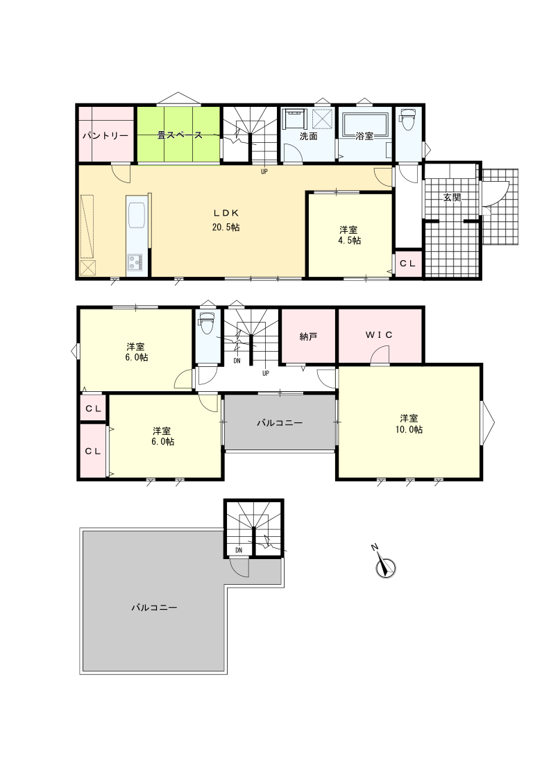 | 間取内容 | LDK・・・20.5帖 洋室・・・10帖・6帖、6帖、4.5帖 畳スペースあり |